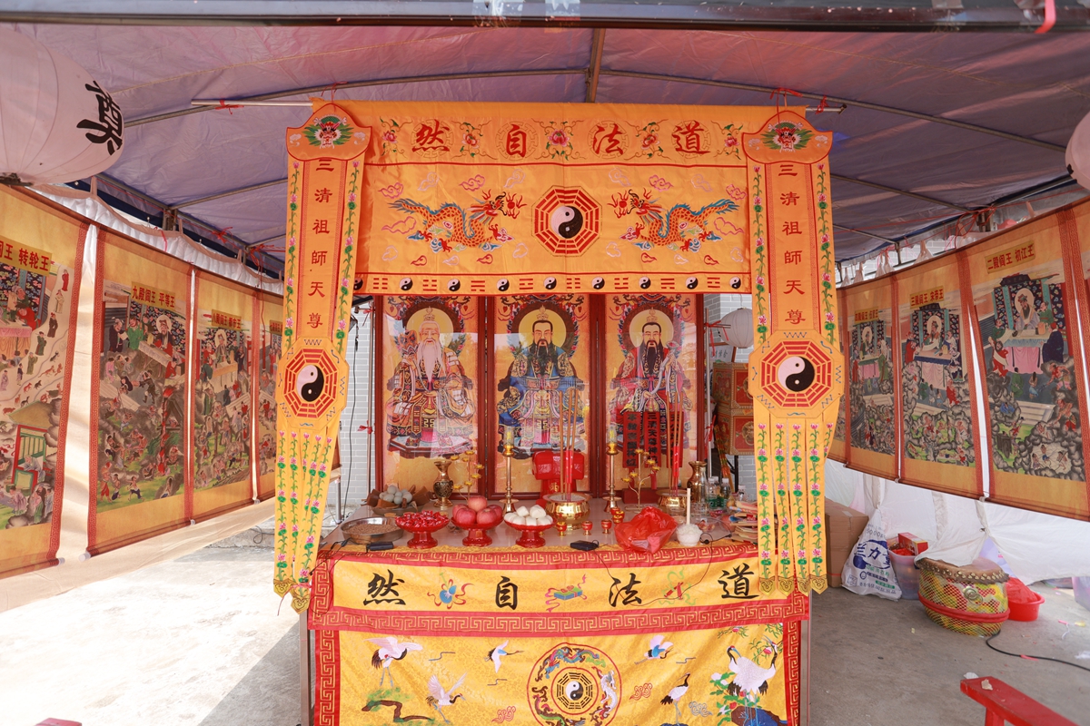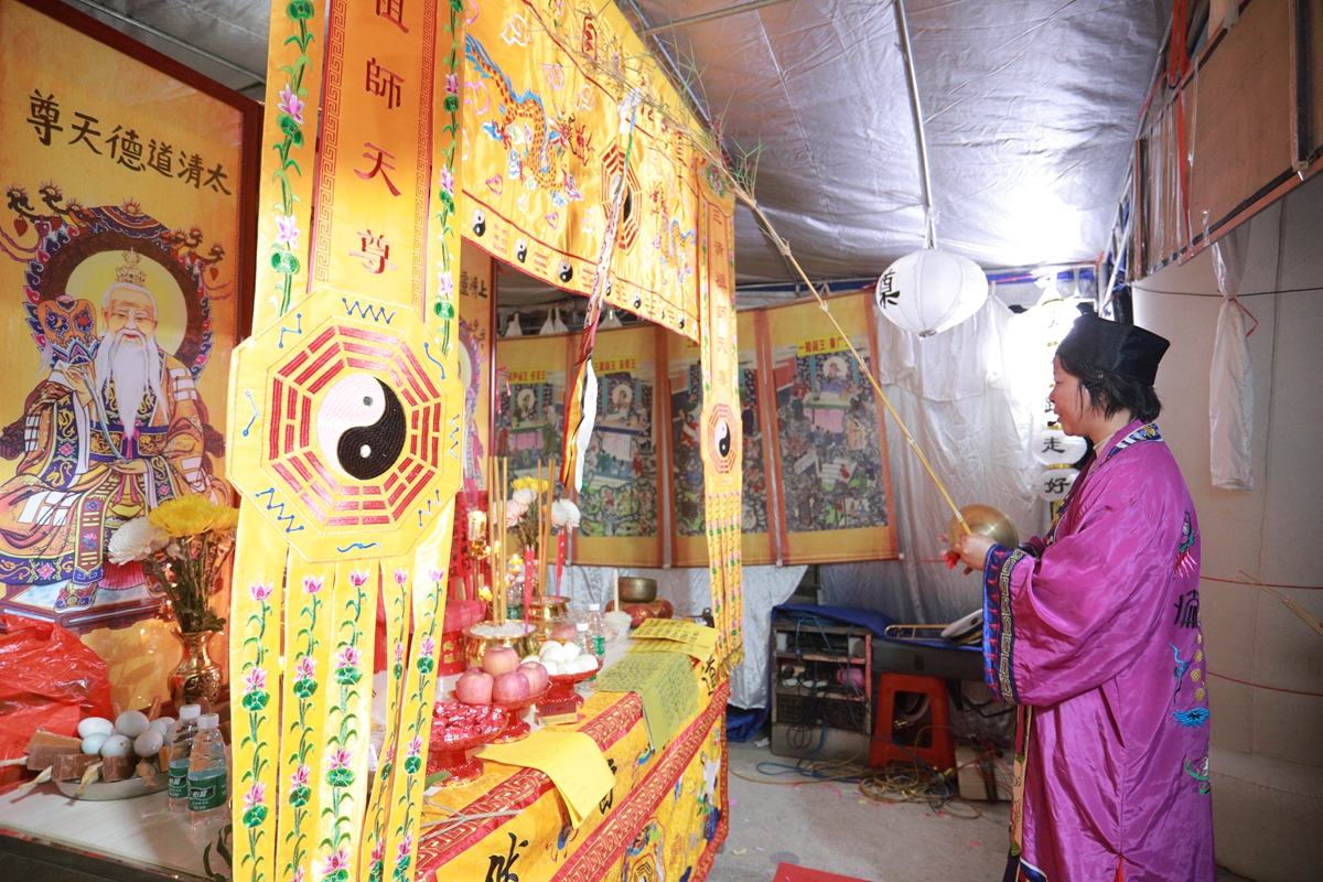 停尸仪式:他被移到正屋明间的灵床上,在亲属们的守护下度过生命中最后的时刻,这叫做"挺丧"。