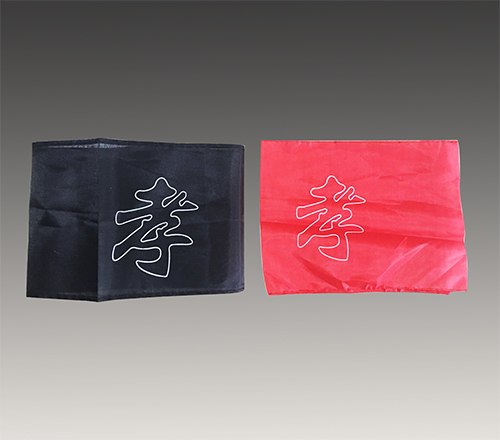 使用方法:由直系亲属佩戴,逝者为男性时,穿戴左臂;逝者为女性时,请穿戴右臂;以示逝者为大,火化后,若之后其他祭祀则无需再穿戴,可脱下孝章,可扔也可烧毁。红色则为曾孙辈佩戴