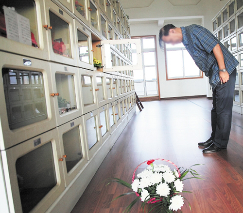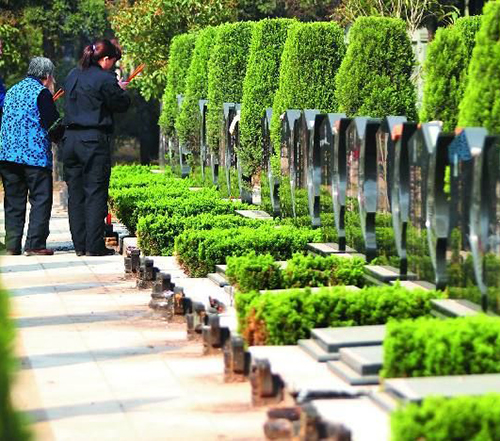 骨灰寄存在市内革命陵园寄存楼,这里交通便利,领取、祭拜方便。